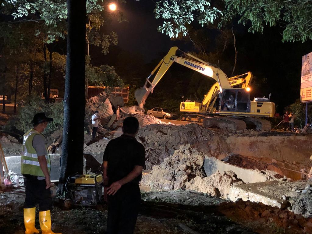 Penanganan dan penggantian Saluran Crossing (Saluran Besi) yang amblas di depan SPBU Sukajadi